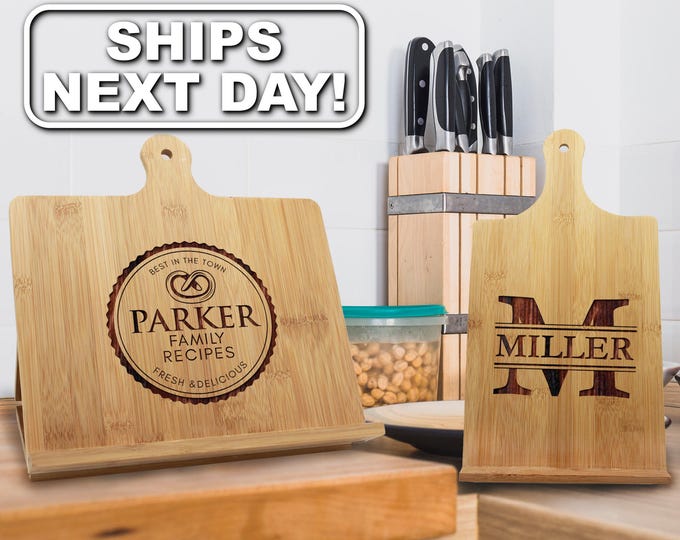 Bamboo Chef’s Easel, Cookbook Stand, iPad Tablet Holder, Imperial Metric Conversions, Kitchen Recipe Board, Laser Engraved Decor, Custom