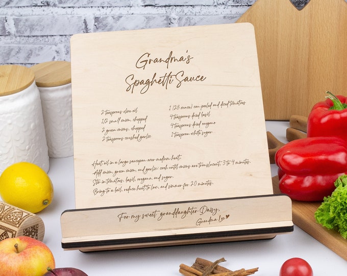 Cook Book Stand Wood Handwritten Recipe Family Heirloom Gifs for Christmas Engraved Recipe Holder Preserve Recipe Keepsake Mom Daughter Gift