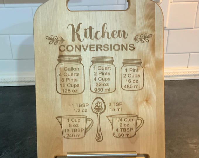 Cookbook stand, adjustable cookbook stand , tablet stand, kitchen conversion chart, handcrafted in Michigan NOT imported, solid maple