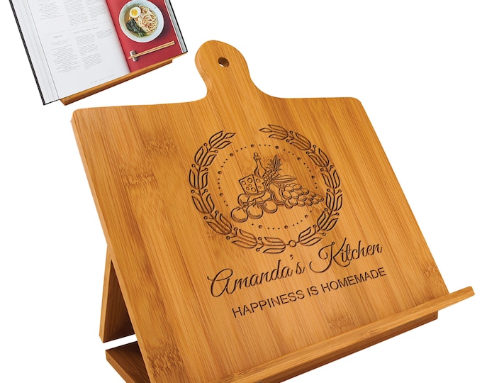 Customized Wood Cookbook Stand Custom Bamboo Engraved Chef Gift for Housewarming Wedding Birthday for Mom, Sister, Aunt