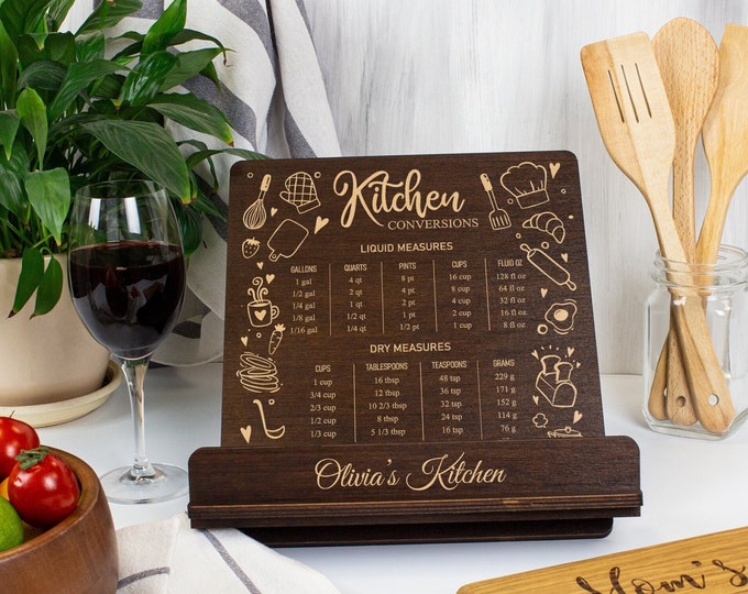 Engraved Wooden Cookbook Stand: Personalized Kitchen Conversion Chart