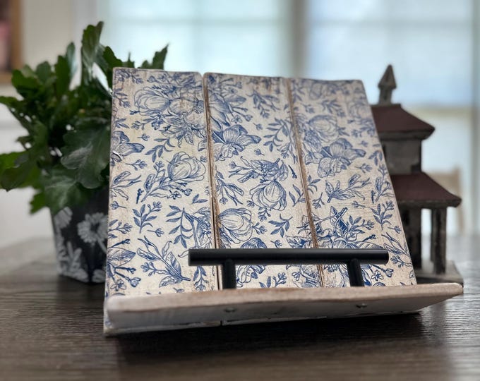 Handmade Rustic Cookbook & iPad Holder: Distressed White or Floral Farmhouse Stand