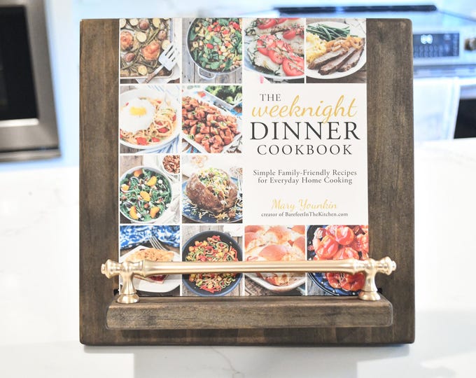 Handmade Wooden Cookbook Stand: Brushed Brass Hardware