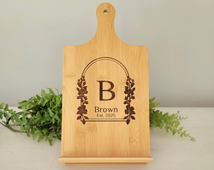 Personalized Bamboo Cookbook Stand: Laser Engraved Recipe Holder