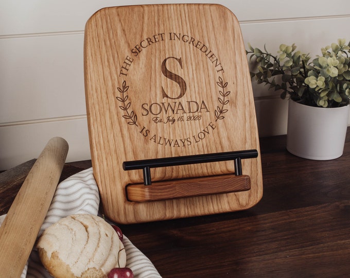 Personalized Cookbook Stand, Book Holder, iPad Stand, Wooden Cookbook Holder, Housewarming Gift, Gift For Mom, Cooking Gifts