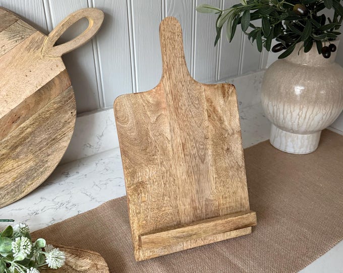 Rustic Mango Wood Recipe Book Holder: Etched or Plain