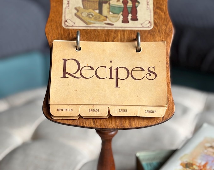 Vintage Wooden Recipe Card Holder: Rustic Farmhouse Kitchen Display
